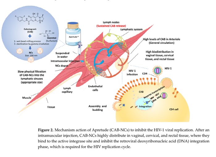 抗感染药物,包括抗细菌、抗真菌、抗病毒和抗寄生虫药物,已被用于治疗不同的传染病。第一个获得FDA批准用于治疗真菌感染的纳米晶产品是口服Gris PEG,该产品由Recro Gainesville LLC于1998年生产,并被批准用于口服抗真菌药物灰黄霉素治疗癣菌感染。2021年,两种商品名为Cabenuva®和Apreude®的控释/缓释注射纳米晶产品获得FDA批准,用于治疗I型艾滋病毒(HIV-1)感染。前者是一种新型长效注射制剂(每月一次),可延长药物的释放。后者是一种暴露前预防用药,用于高危患者或体重超过35kg的青少年的艾滋病毒治疗,以降低性获得HIV-1感染的风险。Apreude®的作用机制是基于抑制HIV-1病毒复制。