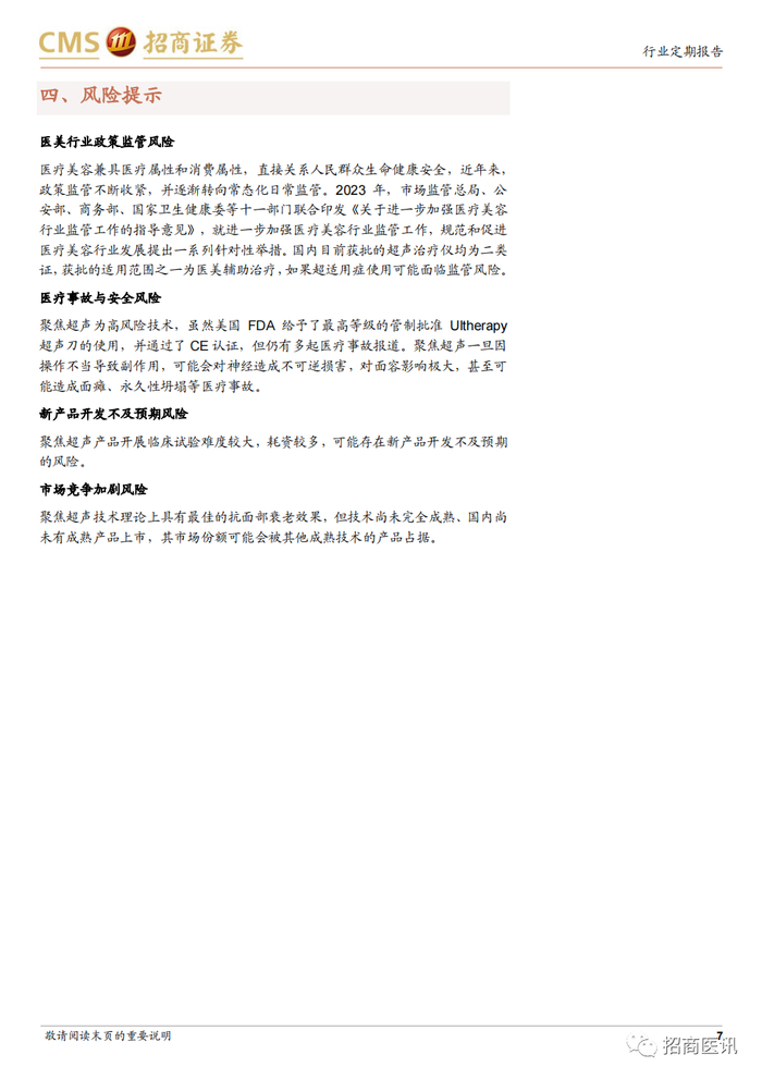 • 风险提示:医美行业政策监管风险;医疗事故与安全风险;新产品开发不及预期风险;市场竞争加剧风险。