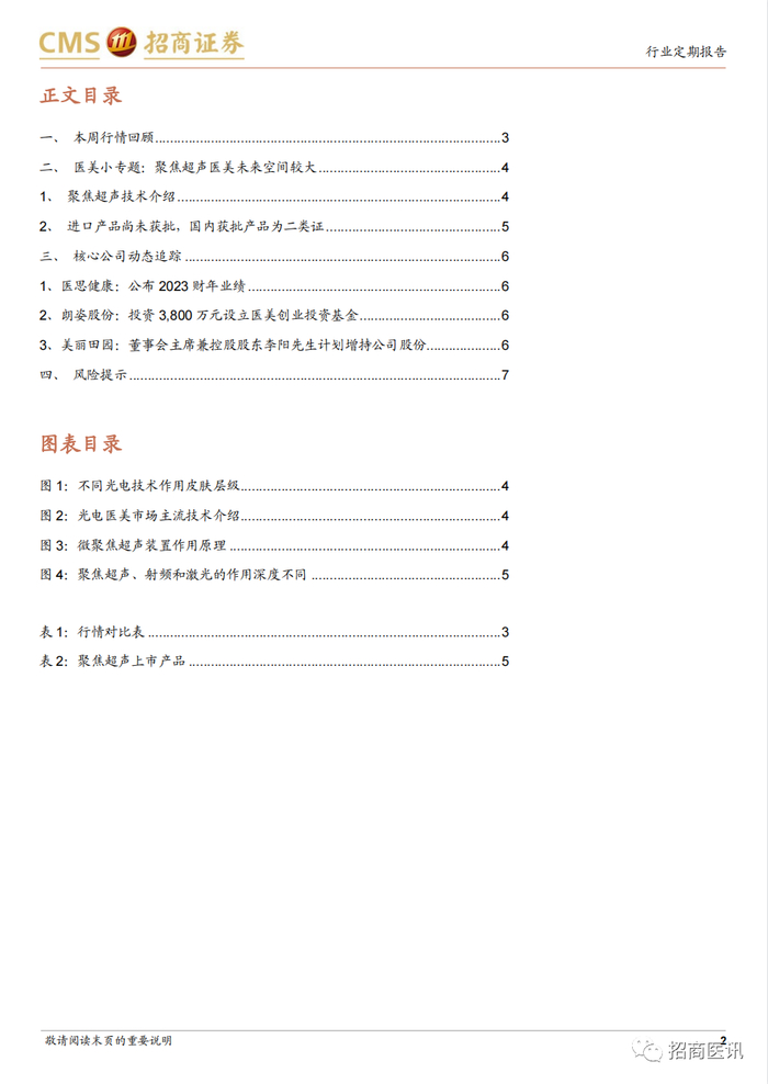 本周周报对医美细分行业板块进行了本周行情回顾、更新核心公司动态,并对聚焦超声医美进行了专题研究