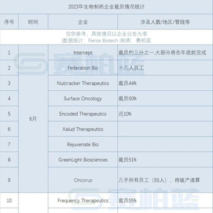 6月23日,行业媒体Fierce Biotech 公布,今年上半年共有91家生物技术公司裁员。