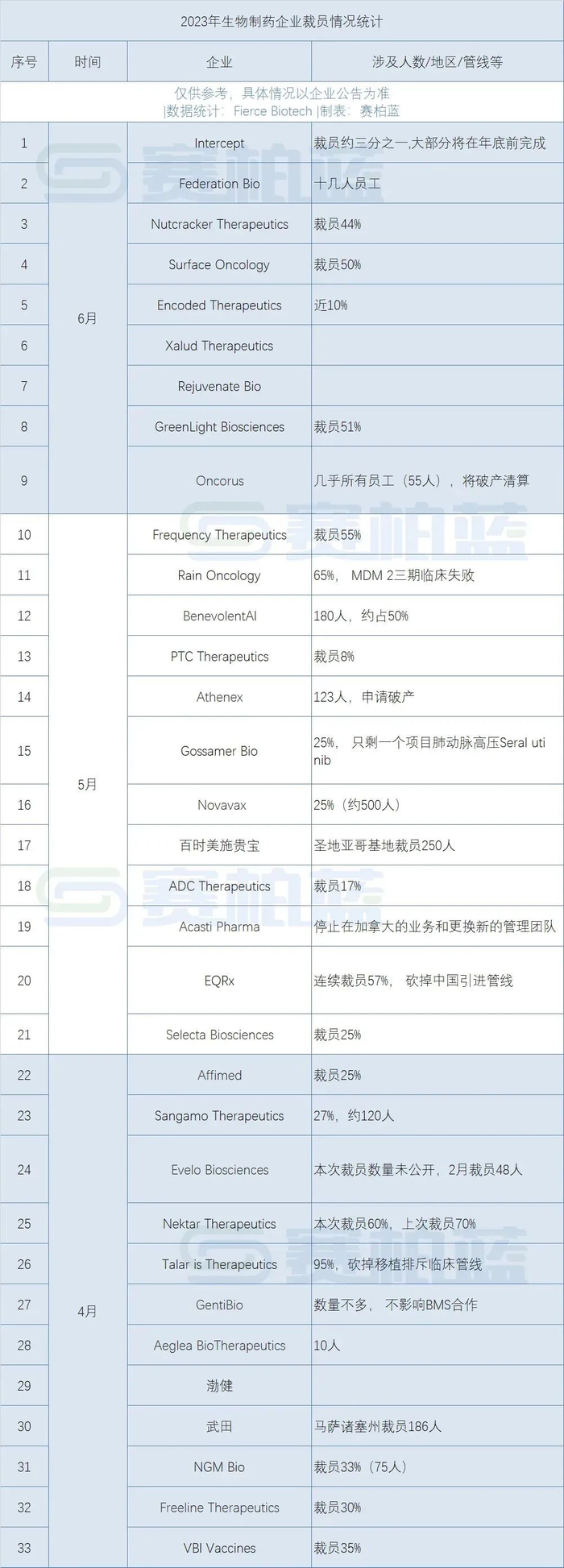 Biotech最早受到冲击,重组业务、节约成本是常见的裁员原因。