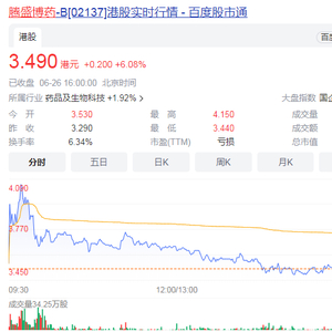 受此消息影响,腾盛博药港股一度涨超20%后逐渐回落。截至收盘,腾盛博药涨幅6.08%,报3.490港元/股,在其今年2月以来跌跌不休的股票走势中激起一朵小水花。