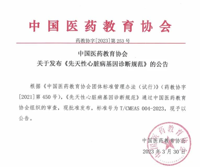 近日,由天津大学泰达国际心血管病医院牵头,联合杭州师范大学、迪安诊断共同起草的国家标准——国内首个《先天性心脏病基因诊断规范》(T/CMEAS 004-2023)(以下简称“《规范》”)正式发布实施。