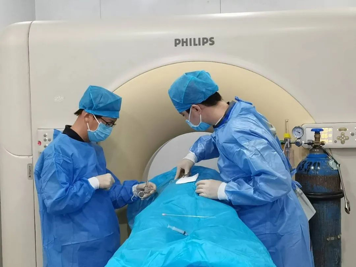 2023年5月,邢台市第九医院肿瘤内科一区团队成功为一名46岁结肠癌术后肝转移的患者进行了放射性粒子植入治疗。