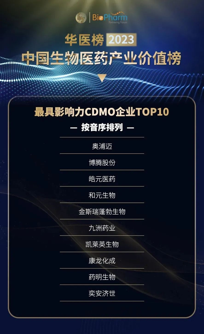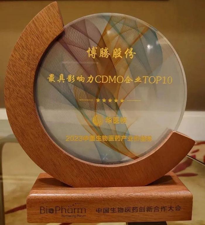 博腾股份荣登“2023最具影响力CDMO企业TOP10”榜单
