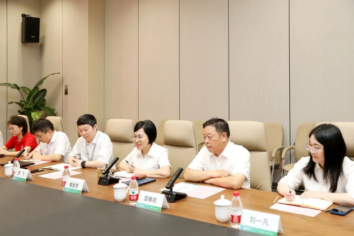 7月4日,浙江省经信厅消费品处处长徐吉成,杭州市经信局党组成员、副局长卢建祥一行莅临百诚医药考察调研,百诚医药董事长、总经理楼金芳,创始人、副董事长邵春能接待并展开座谈交流。