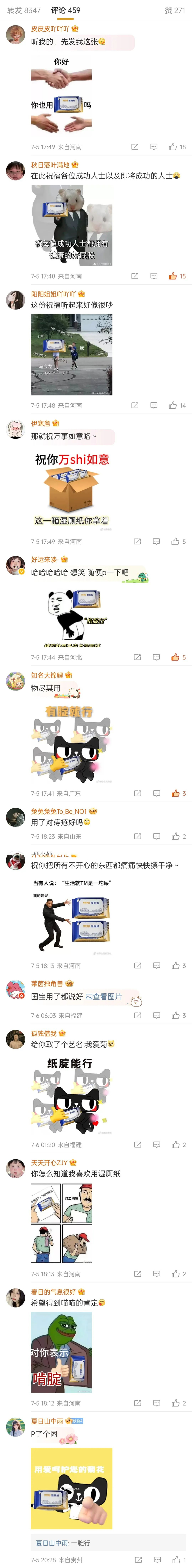 让网友们用马应龙新品湿厕纸做几张表情包来打开聊天氛围