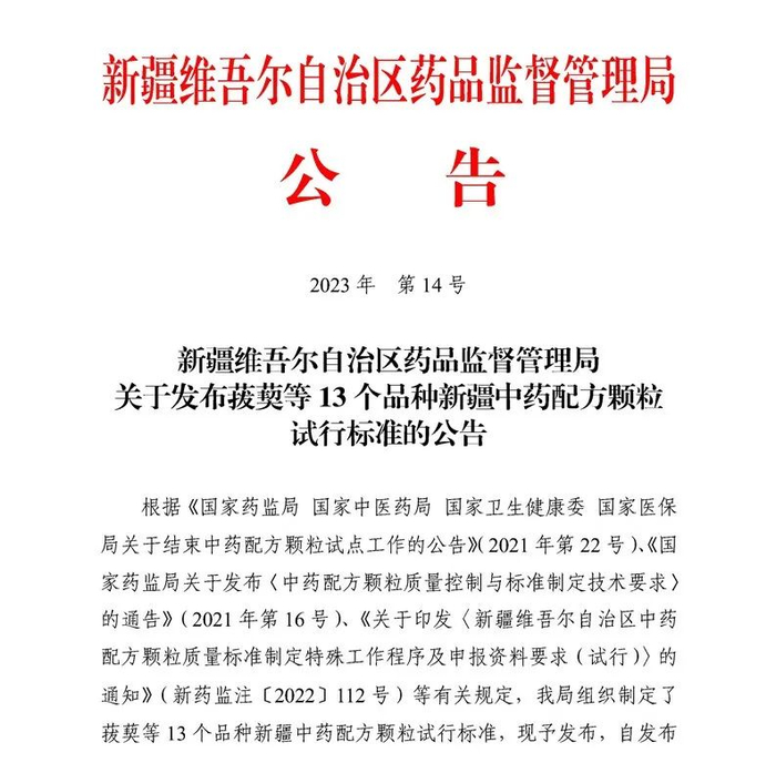 近日,重庆市药监局、新疆药监局 甘肃省药监局发布配方颗粒标准信息,重庆市药监局17个试行品种,新疆13个品种施行试行标准,甘肃14个品种废止。