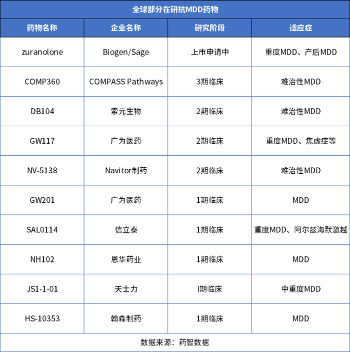 MDD在研新药分析