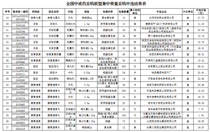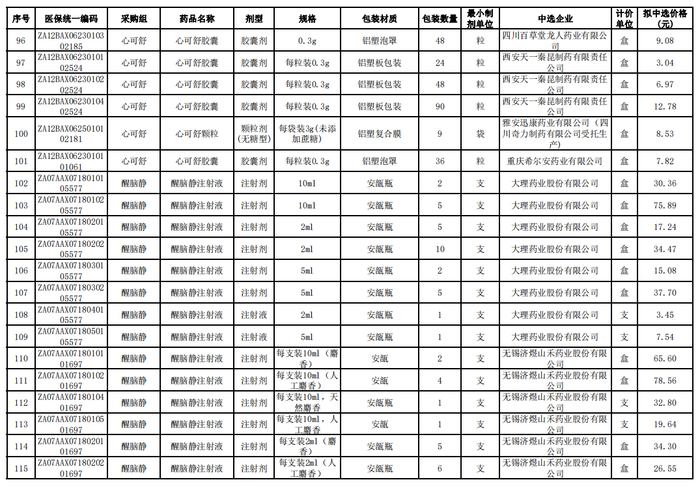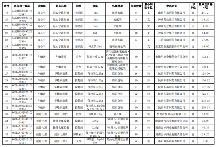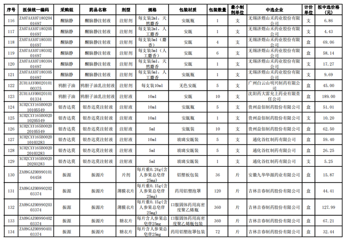 7月7日,全国中成药联合采购办公室发布《全国中成药采购联盟集中带量采购中选企业非报价代表品拟中选价格公示》。本次公示和受理时间均为7月10日至7月12日。