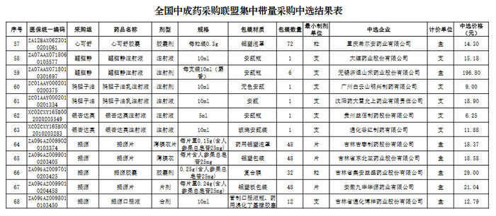 7月5日,全国中成药联合采购办公室发布《全国中成药联盟采购公告(第4号)》,本次集采共有63家企业、68个报价代表品中选,中选率达到71.6%,中选品种平均降幅为49.36%。