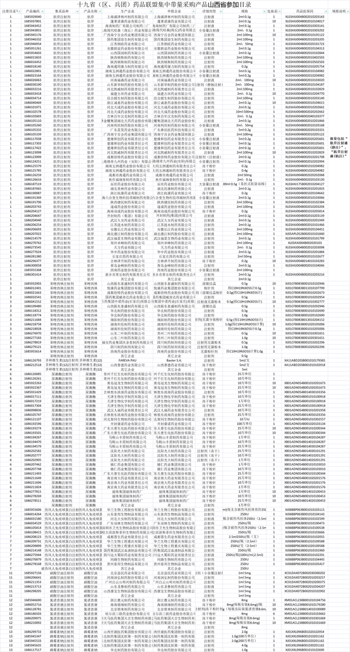 附件5:十九省(区、兵团)药品联盟集中带量采购产品山西省参加目录