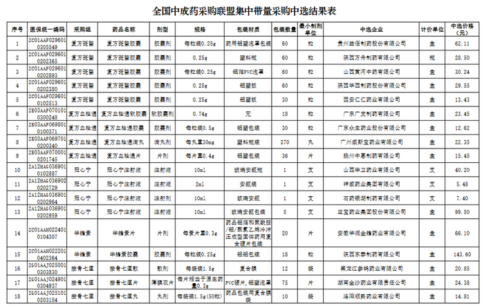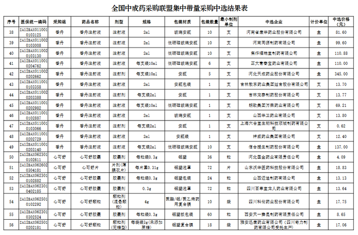 附件2:全国中成药采购联盟集中带量采购中选结果表