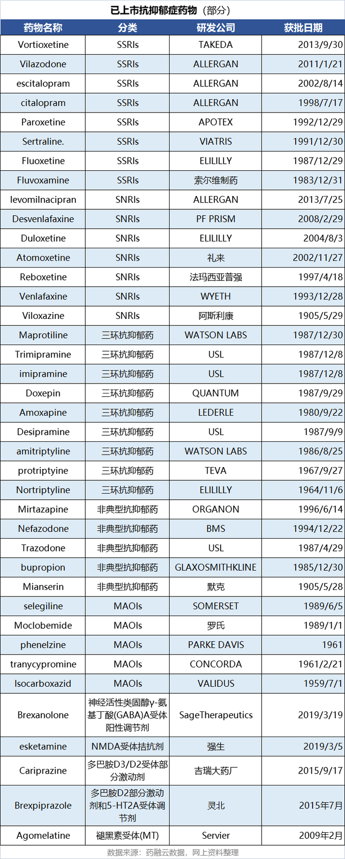 盘点FDA批准上市抗抑郁药物