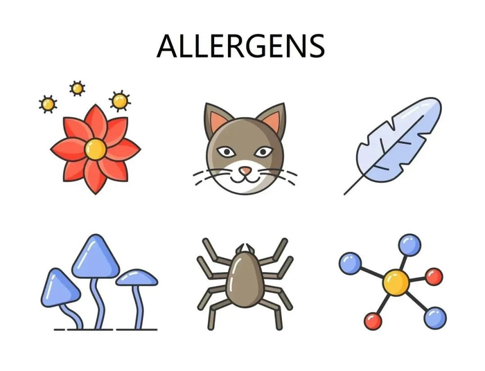 通常可以根据接触过敏原的途径不同将过敏原分为四大类:吸入过敏原、食物过敏原、接触过敏原、注射过敏原。