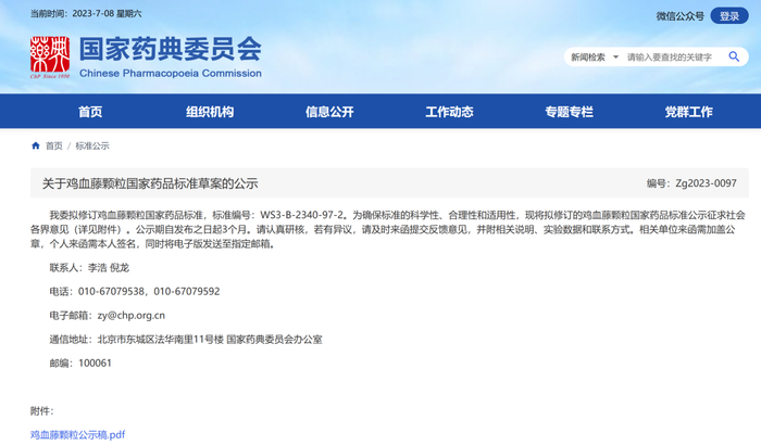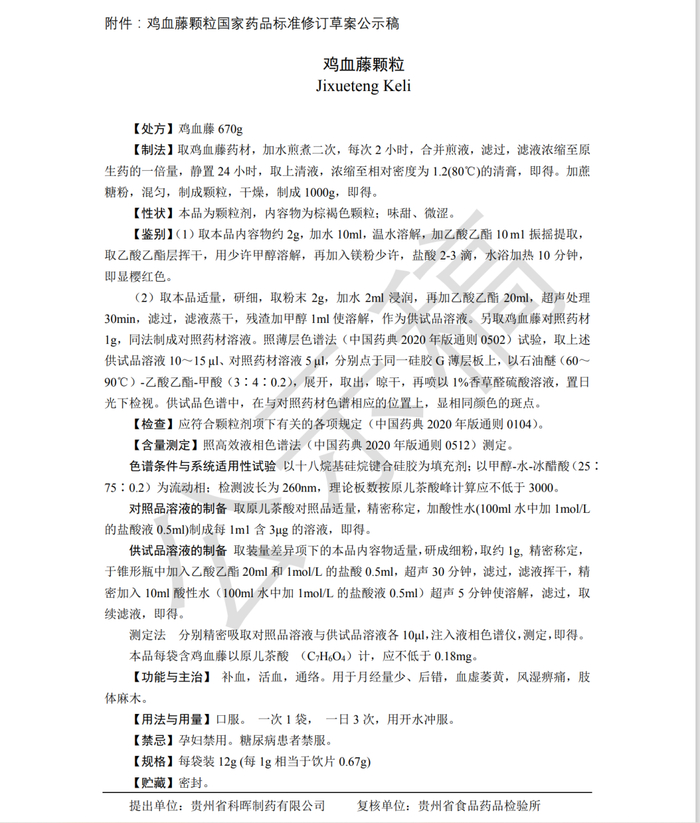 药典委:鸡血藤颗粒等3个中药标准草案公示