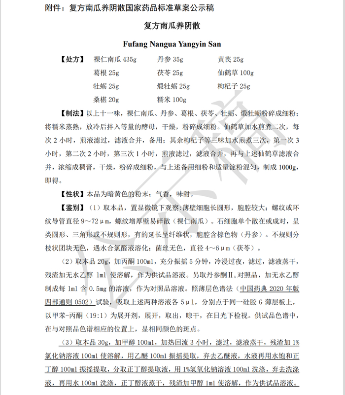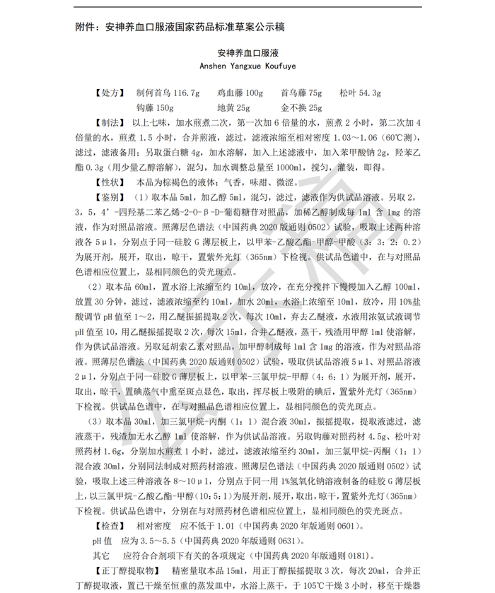 7月7日,药典委公示了三则国家药品标准草案:鸡血藤颗粒、安神养血口服液、复方南瓜养阴散。鸡血藤颗粒和复方南瓜养阴散公示期为3个月、安神养血口服液公示期为1个月。