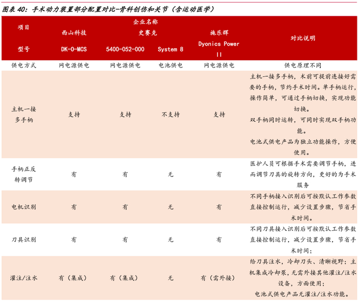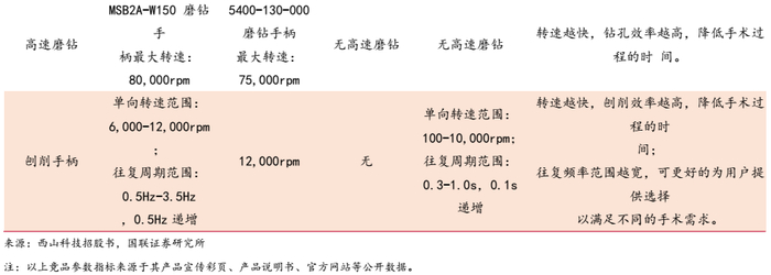 在成熟度较高的骨科创伤和关节领域,与全球骨科龙头史赛克和施乐辉相比,公司手术动力装置在高速磨钻、刨削手柄等功能上基本一致,并针对用户操作,提供电机识别、刀具识别等功能,减少设置步骤和手术时间。