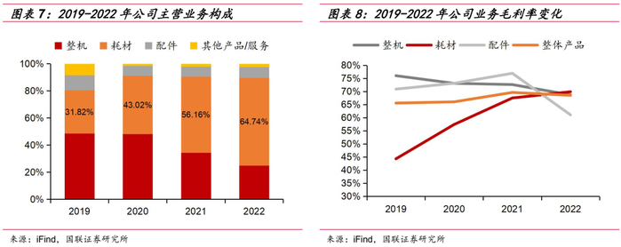 公司营收增长主要来自于一次性耗材收入的大幅增加,耗材营收占比从2019年的31.82%增长至2022年的64.74%,主要得益于前期整机产品在医院装机量不断提升,带动耗材消耗,迎来业绩收获期。同时耗材作为公司核心产品,毛利率也在不断提高,从2019年的44.35%提升至69.93%,规模效应逐渐显现。