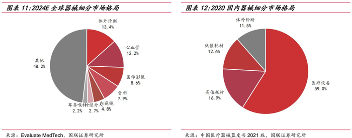 中国医疗器械蓝皮书数据显示,2020年国内医疗器械市场规模达7,721亿元,医疗设备、高值耗材分列细分子行业前两位,占比分别达到59.0%和16.9%。公司手术动力装置整机及配件属于医疗器械中医疗设备细分,而手术动力装置耗材属于高值医用耗材。