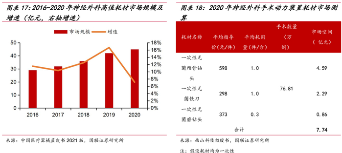 神经外科疾病以脑恶性肿瘤、颅内出血、颅内损伤三大类为主,配套设备及耗材对精细程度要求非常高,2016-2020年,国内神经外科高值医用耗材市场规模由29亿元增长至45亿元,复合增长率为11.61%。公司在神经外科领域耗材布局包括颅骨钻头、磨钻头、铣刀等设备、配件,可应用于颅内出血、颅内损伤、脑恶性肿瘤等神经外科手术中。