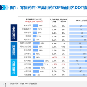 DOT(Duration of Therapy)即“药物治疗持续时间”,其核心是通过多种方式的患者服务,如患者教育、随访管理、支付创新等,延长患者的治疗获益。本文通过中康CMH小票数据,以高血压用药、降血脂药、口服降糖药“三高”用药为例,探讨零售药店慢病患者的DOT情况。