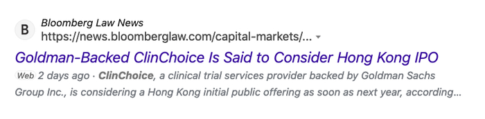 近期,有外媒报道:临床CRO ClinChoice考虑最快明年赴香港IPO上市。报道称IPO可能募资数亿美元资金,公司估值约10亿美元。
