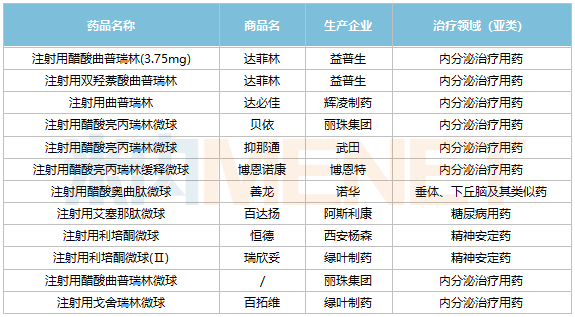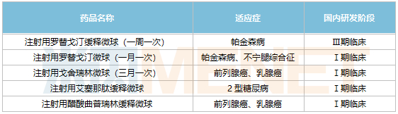国内主要获批微球制剂