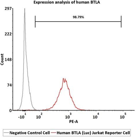 Expression analysis of human BTLA on Human BTLA (Luc) Jurkat Reporter Cell by FACS.