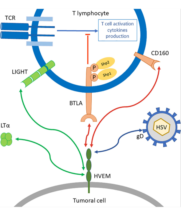 肿瘤中HVEM上调代表另一种类似于肿瘤细胞中高表达PD-L1、PD-L2与免疫细胞上PD-1结合的免疫逃逸机制。