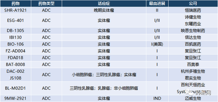 上市/三期的ADC药物