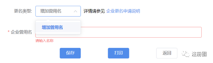 Q:(河南-注册-果冻):CDE平台,变更企业名称是如何操作的,用户中心这里的更名类型怎么只有增加曾用名?