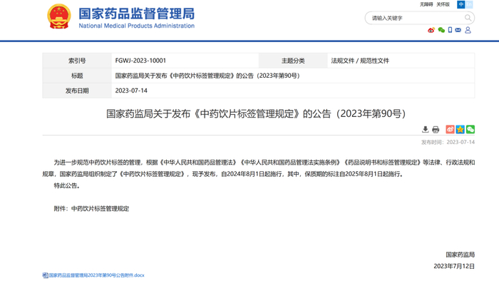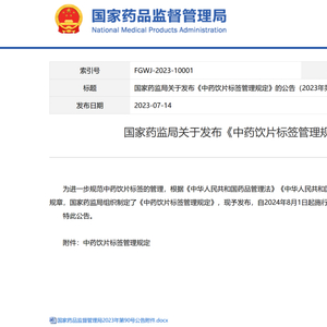 NMPA:中药饮片标签管理规定 发布