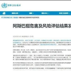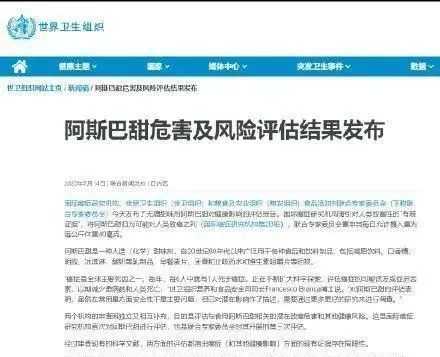 7月14日,世卫组织官网发布消息,国际癌症研究机构(IARC)、世界卫生组织(WHO)和粮食及农业组织食品添加剂联合专家委员会(JECFA)发布了阿斯巴甜对健康影响的评估报告,国际癌症研究机构援引对人类致癌性的“有限证据”,将阿斯巴甜归为可能对人类致癌之列(国际癌症研究机构第2B组),联合专家委员会重申其每日允许摄入量为每公斤体重40毫克。