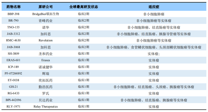 全球已进入临床试验阶段的SHP2抑制剂