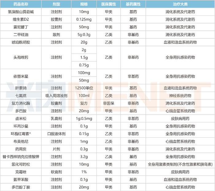 从治疗大类看,拟纳入品种以消化系统及代谢药、全身用抗感染药物为主,各占据5个及以上席位;心脑血管系统药物(3个)、血液和造血系统药物(3个)、皮肤病用药(2个)等紧随其后;神经系统药物、全身用激素类制剂(不含性激素和胰岛素)则各占1个。