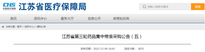 同一时间(2022年12月),江苏省医保局也公布了《江苏省第三轮药品集中带量采购中选结果》,名单中包含氟比洛芬凝胶贴膏、注射用醋酸亮丙瑞林缓释微球、奥沙利铂甘露醇注射液等43个未过评品种。值得注意的是,本次集采不再对产品进行质量分组竞价,对非独家品种流标后,将新增一轮竞价,同品种所有企业合为一组重新报价,产品竞争显然愈发激烈。