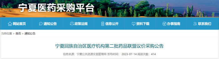 来源:宁夏医药采购平台