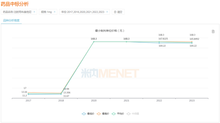 近年来布美他尼注射剂(1mg)全国中标情况