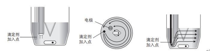滴定剂加入点滴定剂应该在湍流最大的地方加入可以获得最佳的混合效果。另外加入点应该远离电极以便有充分的反应时间。否则电极直接测量到加入的碘分子,将导致滴定速度变慢、滴定时间更长。
