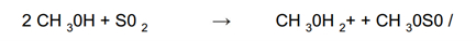 pH和反应速率的这种关系的一种解释是:它并非由于在水的影响下被碘氧化的二氧化硫本身,而是由于二氧化硫和甲醇反应形成的甲基亚硫酸根离子。二氧化硫和甲醇的反应如下: