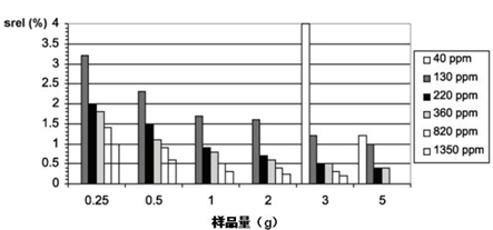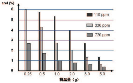 上述举例中,相对标准偏差随着样品量的减小而增大,为得到重复性高的结果必须优化样品量。特别对于低含水量的样品,增大样品量是个不错的优化方向。