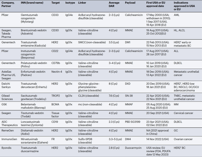 1. Dumontet, C., et al., Antibody-drug conjugates come of age in oncology. Nat Rev Drug Discov, 2023.