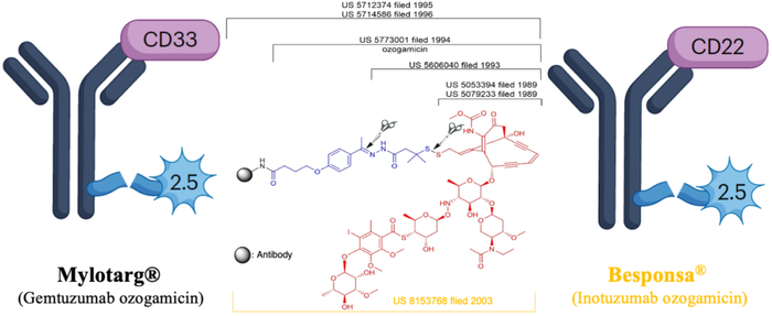 图1. Mylotarg® (Gemtuzumab ozogamicin),Besponsa® (Inotuzumab ozogamicin, Orange)