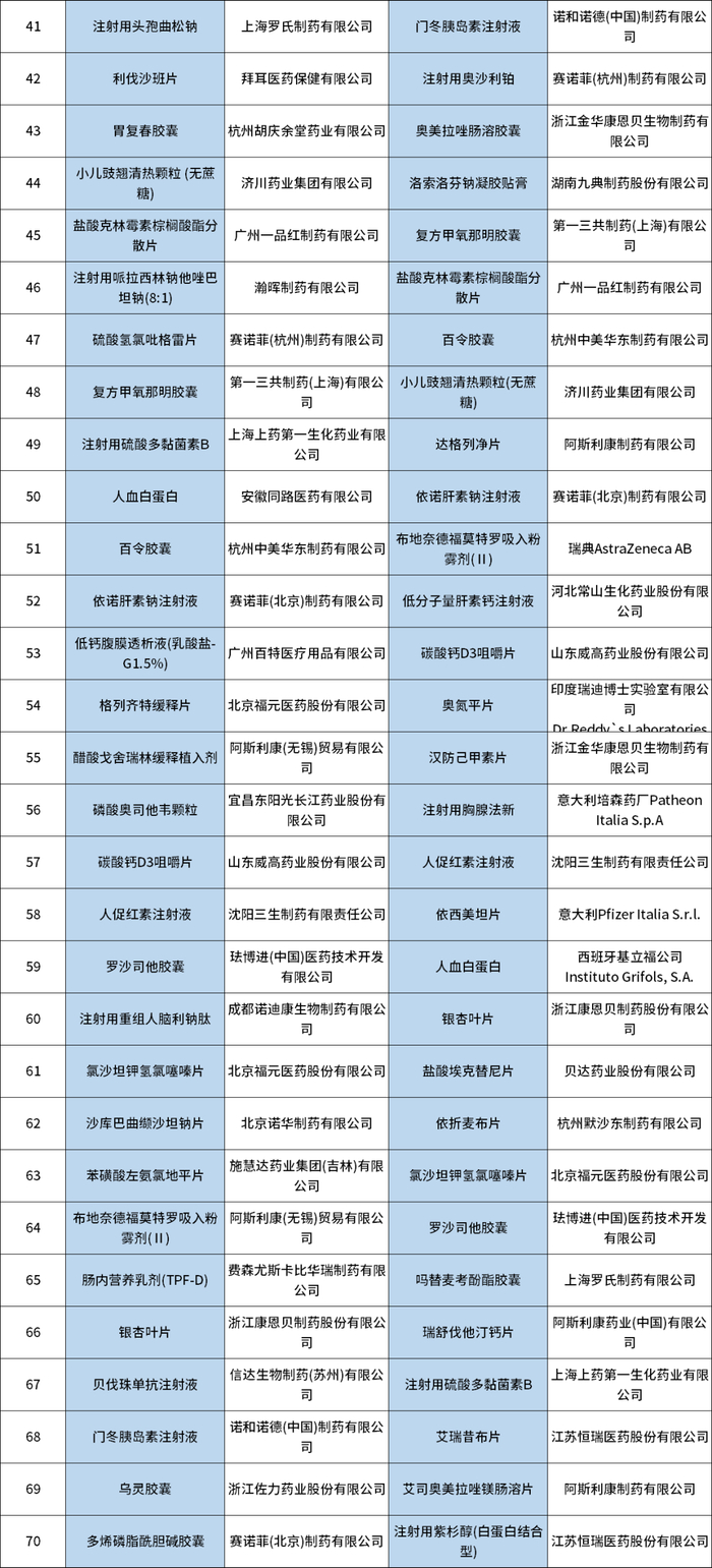 这背后应该是集采的冲击。布地奈德、利伐沙班、头孢曲松钠均为国家第五批集采药品,甘精胰岛素为第六批国家集采药品,而阿斯利康、拜耳、赛诺菲和罗氏均未中选。