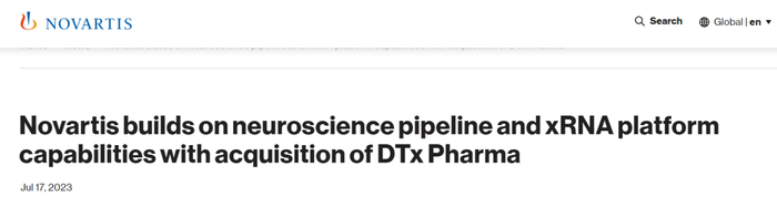 10亿美元!诺华收购RNA疗法公司DTx Pharma