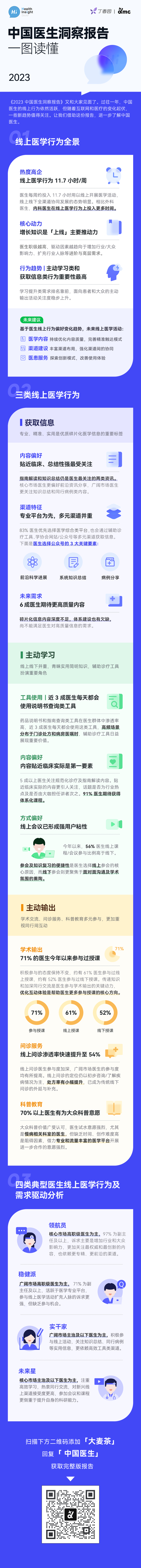 《2023 Hi Doctor 中国医生全景洞察报告》如期出炉。《报告》基于对 5 千余名真实医生的定量调研和定性访谈,力求准确描摹中国医生在信息获取、主动学习和主动输出等线上行为等方面的态度变化和行为趋势。