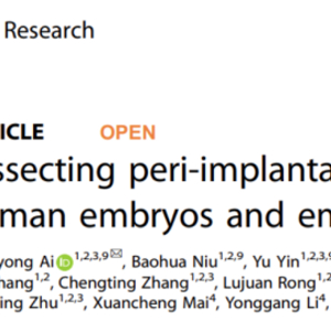 人囊胚是一个由约200个细胞组成的中空圆形结构,在囊胚后期,内细胞团(ICM)分裂为上胚层(epiblast)和下胚层(hypoblast),前者发育为羊膜和三胚层并最终形成胎儿,后者产生卵黄囊。在受精后6-7天,囊胚植入子宫,开始着床后发育。临床上有60%左右的胚胎会在围着床阶段(受精后6至14天)出现着床失败或妊娠丢失,此外,我国胎儿出生缺陷率为5.6%。着床失败、妊娠丢失和胎儿出生缺陷,与围着床胚胎的异常发育密切相关,但机制尚不清楚。长期以来,人围着床胚胎的发育机制处于“黑匣子”状态,深入解析人围着床胚胎的发育机制,有助于理解胚胎发育与疾病发生的关系,从而为不孕不育和胎儿出生缺陷的诊疗提供理论依据。