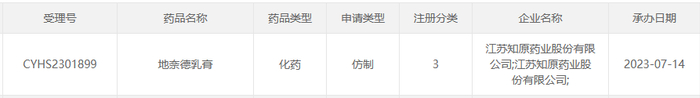 图1:江苏知原药业最新申报的产品情况