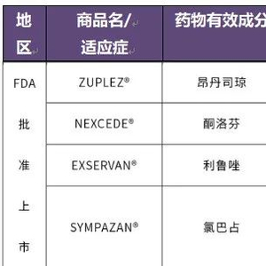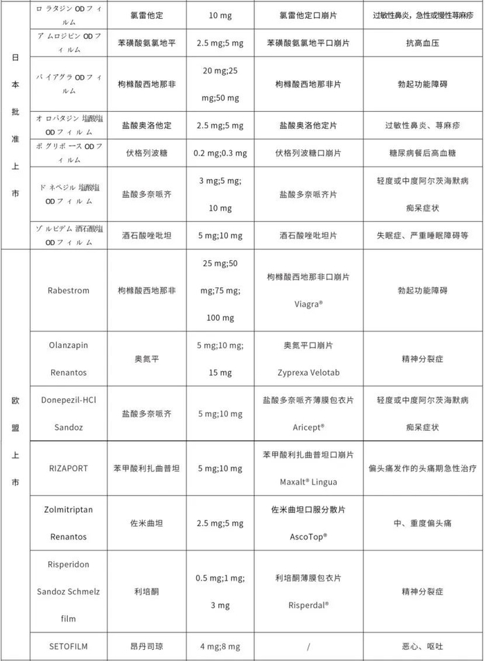 国外部分获批上市的口溶膜制剂